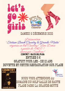 - Au Bonheur des Bottes ! Bal workshop et concert, samedi 17 novembre, salle de Haute Plage. A 15h, Guylaine Bourdages, la pétillante Marraine de notre club, animera un stage 3 niveaux. Elle nous arrive tout droit du Canada ! A 18h30, vous aurez la chance d’assister à un concert acoustique et d’écouter la fabuleuse voix de Wayne Law, qui nous arrive d’Australie ! Et à 20h, bal, animé par notre charmante Céline. Résa possibles par mail sbc.lgm@gmail.com